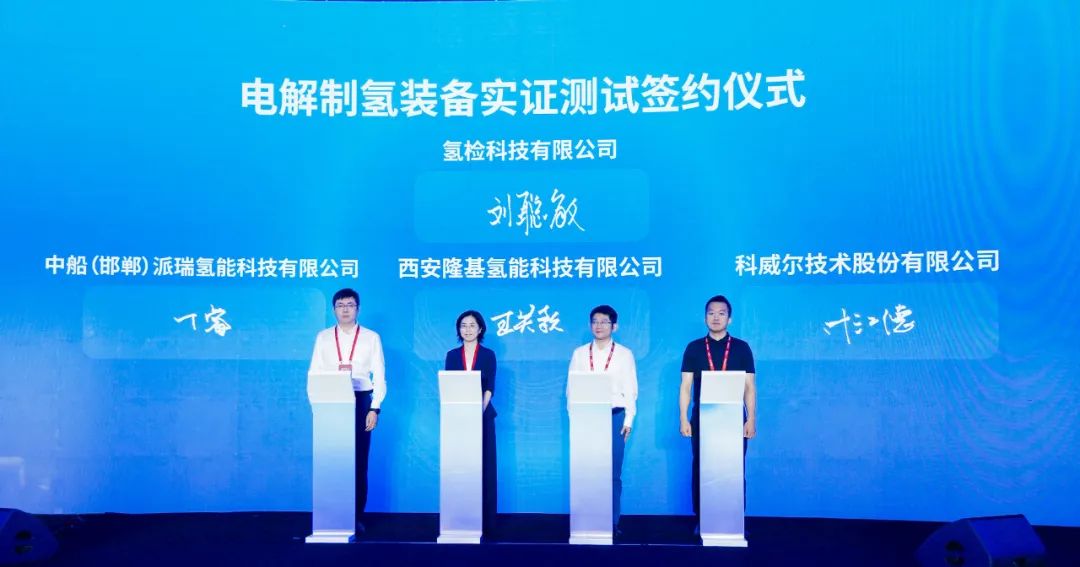 7月25日,科威尔技术股份有限公司与国家能源集团氢检科技有限公司在内蒙古鄂尔多斯市伊金霍洛旗签署战略合作协议。基于良好互信原则,双方将利用各自资源优势,开展示范项目的深入合作,共同促进绿色氢能关键装备检测实证基地电解水制氢装备检测能力建设,加快氢能关键装备测试、认证服务商业化落地进程。