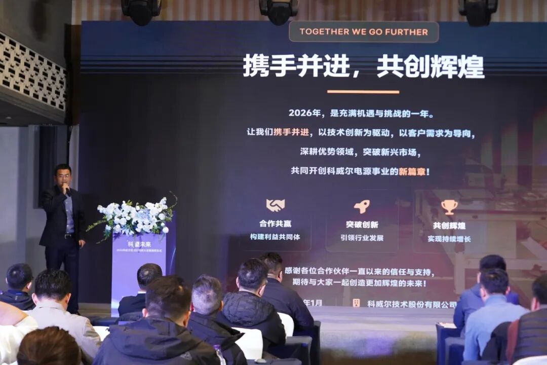 大会现场,董事长傅仕涛回顾科威尔的深耕之路:“自创立以来,我们始终聚焦核心——以技术攻坚破解产品痛点,以高效响应升级售后服务,这是我们赢得市场与伙伴信任的根基。2026年,科威尔将再启新程:进一步提升客户体验、持续提升服务品质,以更全面的赋能体系携手分销商伙伴,深耕价值、聚力共赢,共赴行业新蓝海!”