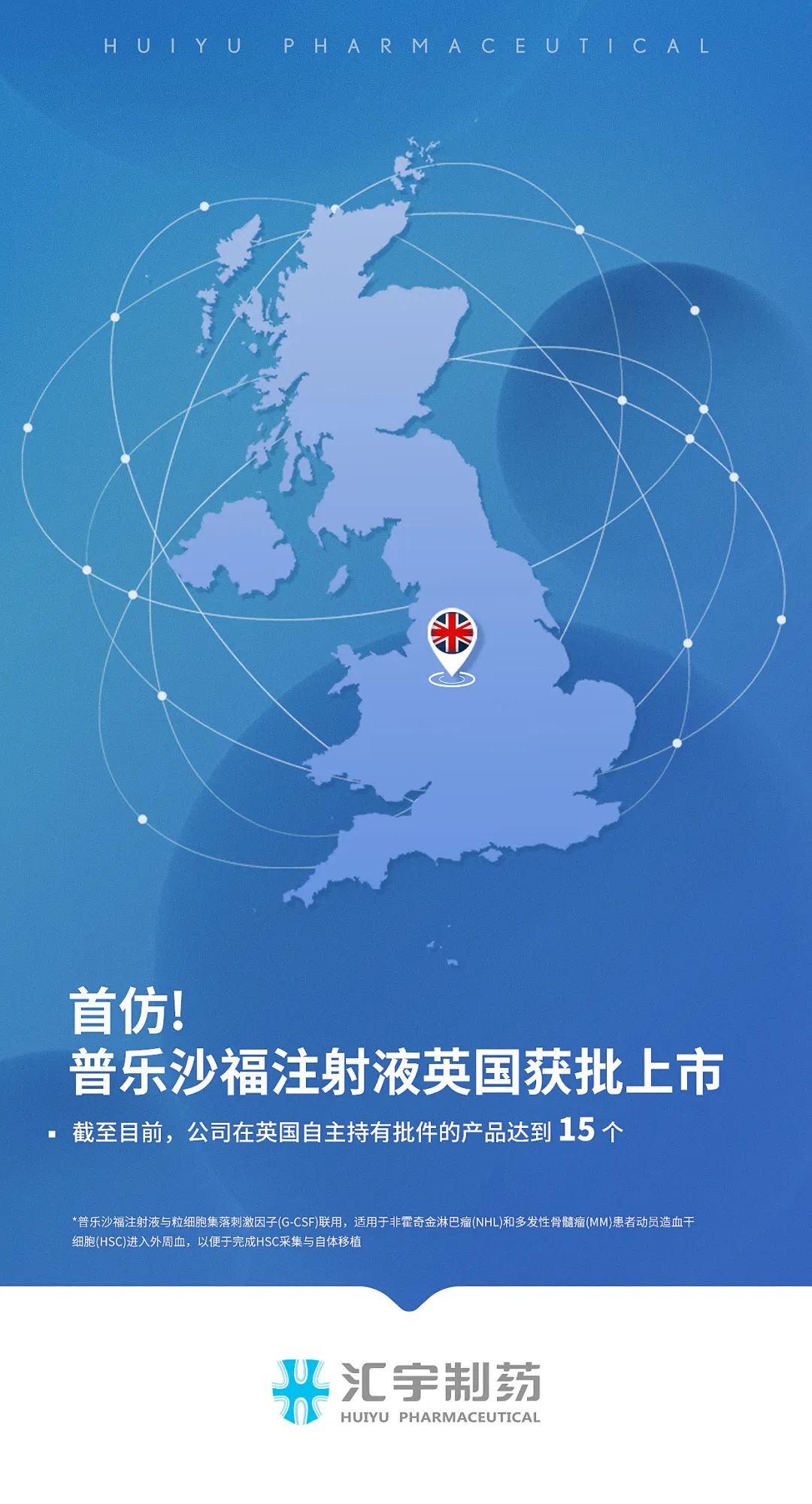 近日,汇宇制药普乐沙福注射液在英国获得注册批件,是首家在英国获得该仿制药批准的企业。目前,汇宇在英国市场自主持有批件产品已有15个。