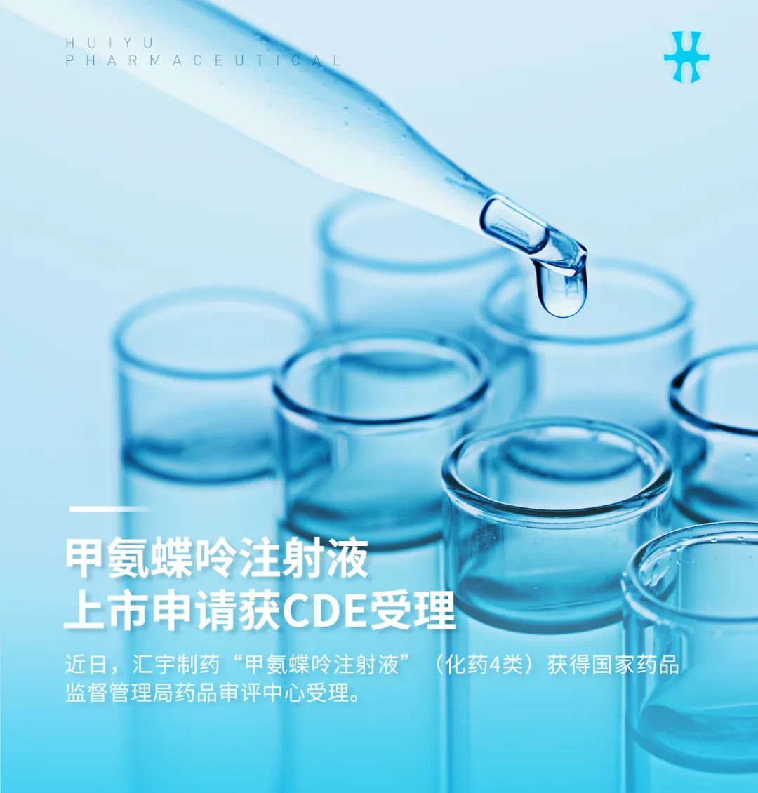 近日,汇宇制药“甲氨蝶呤注射液”(化药4类)获得国家药品监督管理局药品审评中心受理。