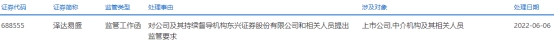 中国经济网北京6月7日讯上交所网站昨日公布对泽达易盛(688555.SH)下发的监管工作函,处理事由为对公司及其持续督导机构东兴证券股份有限公司和相关人员提出监管要求,涉及对象为上市公司,中介机构及其相关人员。