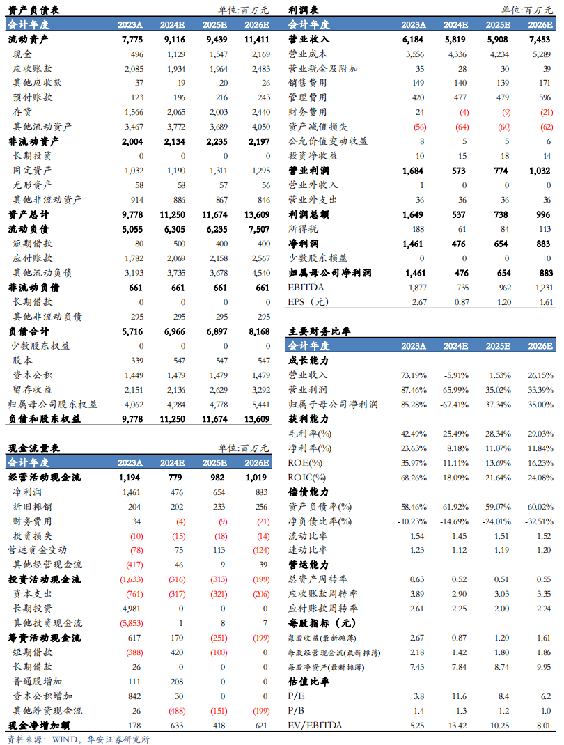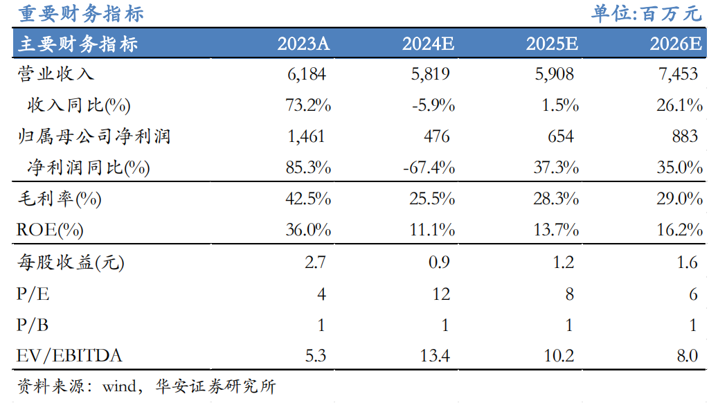 我们考虑到硅片环节整体盈利承压,公司切片代工业务及金刚线盈利性静待修复,下调公司盈利预测,预测公司2024-2026年营业收入分别为58.19/59.08/74.53亿元(调整前为73.78/92.36/111.56亿元),归母净利润分别为4.76/6.54/8.83亿元(调整前为10.59/14.06/17.14亿元),以当前总股本5.47亿股计算的摊薄EPS为0.9/1.2/1.6元。公司当前股价对2024-2026年预测EPS的PE倍数分别为12/9/6倍,考虑到公司切割设备的市占率高,且公司技术闭环优势带来切片代工及耗材业务韧性,及创新业务的业绩弹性,维持“买入”评级。