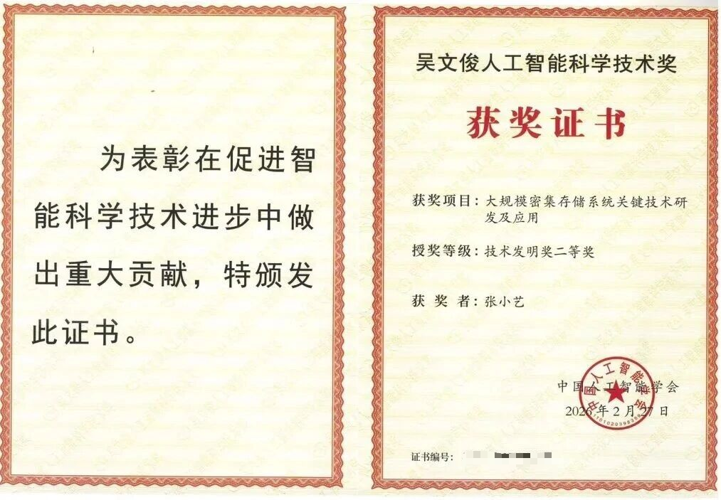 兰剑智能总经理张小艺,高级副总裁沈长鹏博士、刘鹏博士、张贻弓博士,凭借“大规模密集存储系统关键技术研发及应用”,荣获技术发明奖二等奖,真正实现从技术突破到产业落地的重大突破。