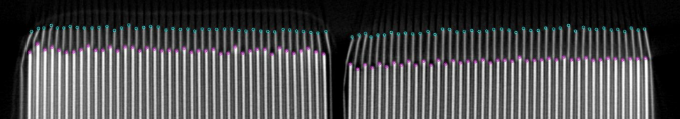 可直接测量正负极极片overhang,无漏判,解决二维X-ray间接测量导致结果不准确的问题。检测图像具备图像卷积滤波/亚像素测量/正负极智能识别能力,测量结果无需人工干预,通过软件自动分析,判断并统计良品与不良品。实现多角度立体成像、无死角、无漏判、无极片高低差误判。