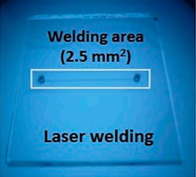 Novolas掩膜焊接(Mask Welding)工艺采用线状激光束,并配合高精度掩膜对微流道区域进行遮蔽,使激光能量精准作用于盖片与基片需焊接的接合区域,流道部分因受掩膜保护而不受热或机械影响。