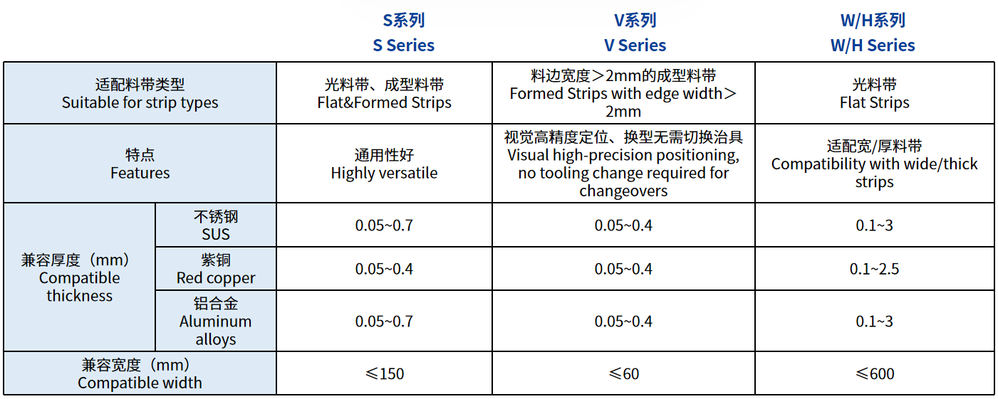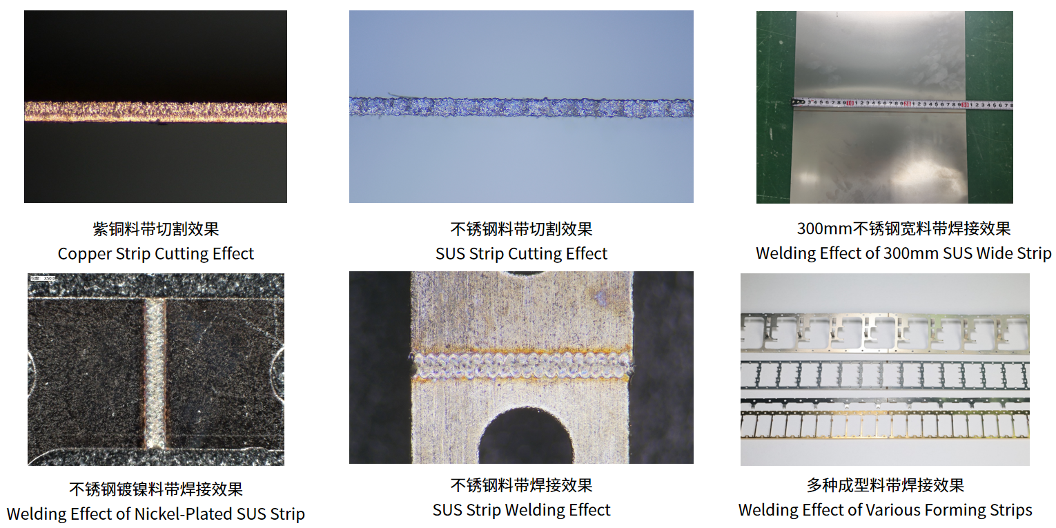 面对AI算力、3C、新能源等日益复杂的制造场景,海目星打造三大系列产品,形成覆盖0.05mm超薄料带~3mm超厚料带、5mm超窄~600mm超宽料带的全规格产品矩阵,性能参数行业领先,无论是超薄精密料带还是超宽厚料带,均能实现稳定、高效的切焊加工,为多行业提供一站式解决方案。