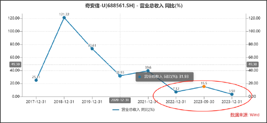 然而,公司的增速在上市一年后便开始出现失速,2022年公司营收增速大幅降至7.12%,而2023年预告增速进一步降至3.59%。