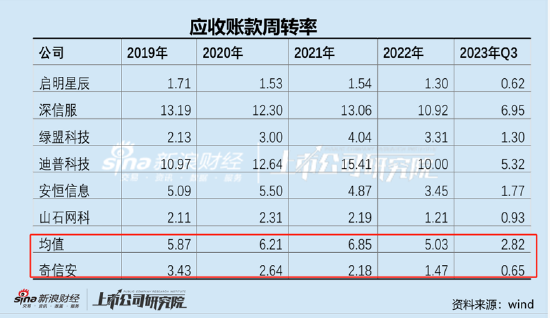 我们再横向对比看,可比同行启明星辰、深信服、安恒信息等公司。我们发现,公司近年应收账款周转水平也显著低于行业均值,具体如下: