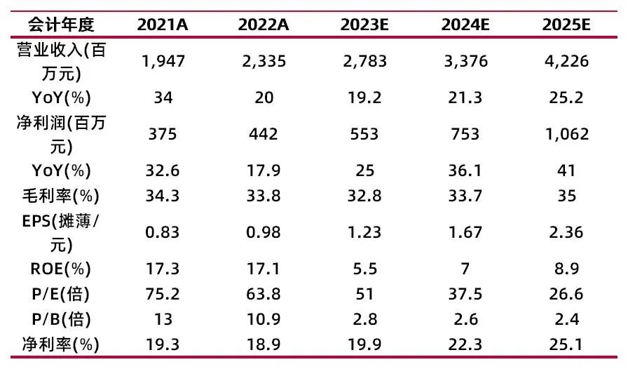 我们下调了公司的盈利预测,预计公司2023-2025年EPS分别为1.23\1.67\2.36,对应公司10月30日收盘价62.72元,2023-2025年PE分别为51.0\37.5\26.6,维持“增持-A”评级。