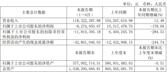 力源科技(688565.SH)2023年半年度报告显示,公司2023年上半年营业收入为1.18亿元,同比增长13.48%;归属于上市公司股东的净利润为-827.50万元,上年同期为1051.75万元;归属于上市公司股东的扣除非经常性损益的净利润为-1181.04万元,上年同期为640.02万元;经营活动产生的现金流量净额为-4286.10万元,上年同期为-1243.30万元。