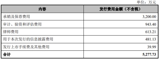 力源科技首次公开发行的发行费用合计5,277.73万元(不含增值税金额),其中,承销及保荐费用为3,200.00万元。