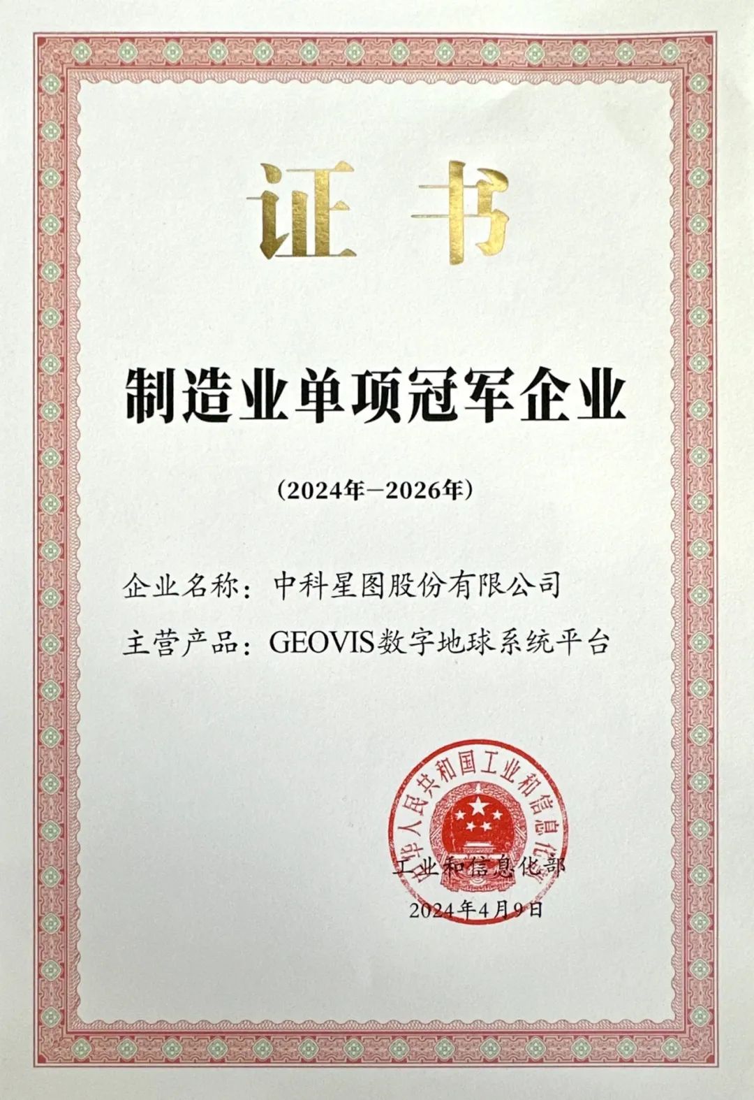 近日,由北京市经济和信息化局、北京工业经济联合会联合主办的北京市第八批制造业单项冠军交流会暨颁发证书仪式隆重举办。中科星图参加此次交流会并获颁“制造业单项冠军企业”证书。
