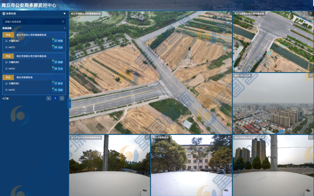 在公安指挥中心,多路无人机画面同步接入多屏监控系统: