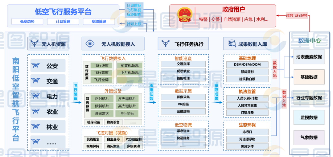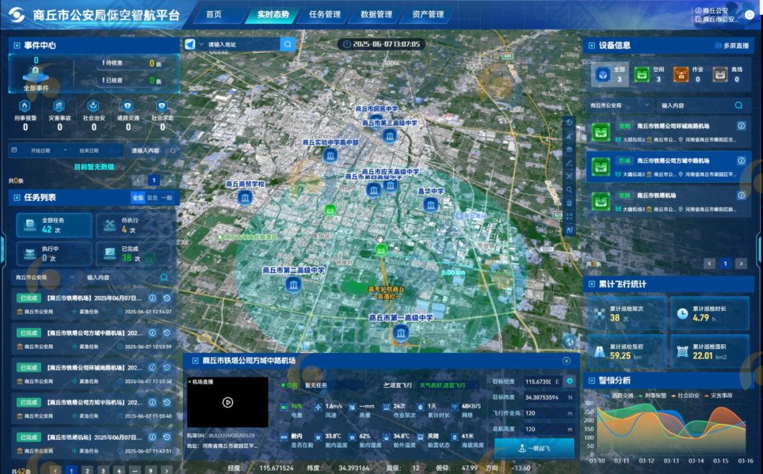 中科星图旗下中科星图智源科技(安徽)有限公司(以下简称“星图智源”)围绕低空经济+场景应用,建设商丘市及南阳市公安局低空智航飞行平台,提供基于GEOVIS iFight基础平台构建的精细感知、动态监管、监测预警、应急处置等全方位、全地域、全过程的成熟产品和技术服务,实现低空+公安巡检、低空+生态保护、低空+森林防火、低空+道路巡查等70余项应用场景,打造无人机监管、AI数据服务等核心能力,力争在河南省乃至全国树立低空经济标杆。