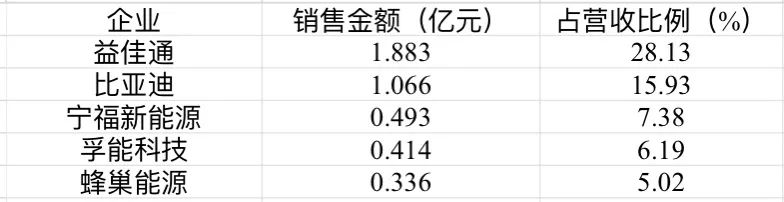 2022年,信宇人前五大销售客户分别为益佳通、比亚迪、宁福新能源、孚能科技以及蜂巢能源。