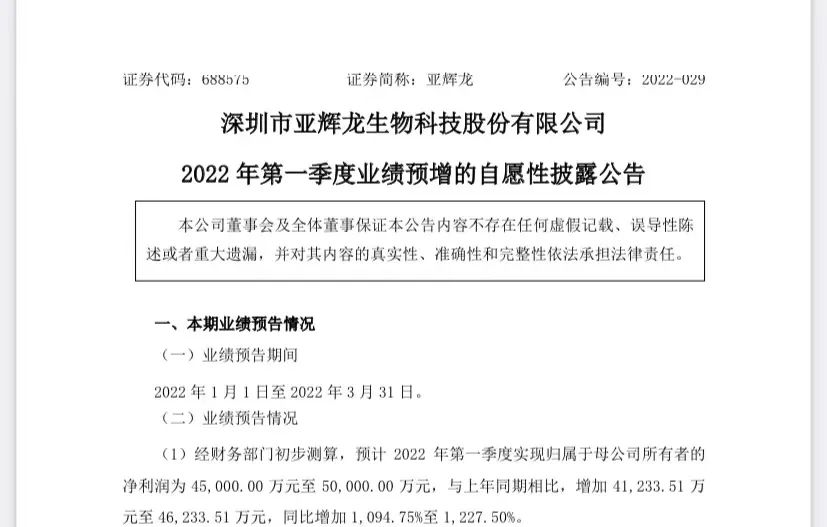 得益于新冠抗原检测试剂盒在海外创收,亚辉龙(688575)今年一季度业绩大增。4月14日晚间,亚辉龙披露业绩预告,预计2022年第一季度净利4.5亿元-5亿元,同比增长1094.75%-1227.5%。一季度净利润已超过亚辉龙去年全年的。