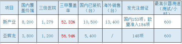 亚辉龙的化学发光推出只有6年的时间,但短短几年,亚辉龙的化学发光在国内就取得了瞩目的成绩。虽然在某些方面已经接近化学发光龙头新产业了。但在检测项目注册证、终端数量以及海外市场与新产业还有不少差距。