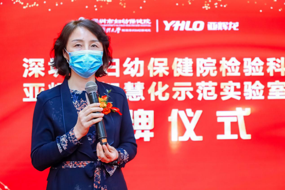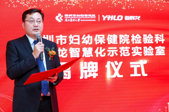 深圳市妇幼保健院检验科副主任朱岩首先致辞并感谢各位的光临,检验科致力于实验室标准化、自动化、智慧化、人文化“四化”建设,以打造“无人值守智慧实验室”为建设目标,成为智慧物联时代新型医学实验室的践行者。亚辉龙智慧化示范实验室的揭牌,标志了一个新的起点,代表着“无人值守智慧实验室”的开始,未来也将与亚辉龙等IVD企业精诚合作,共同助力智慧实验室的发展,作为实验室管理和信息化小组的组长单位,也期待能与各位同仁群策群力投入到智慧实验室的建设中来,为检验医学的发展开拓一个创新之路。