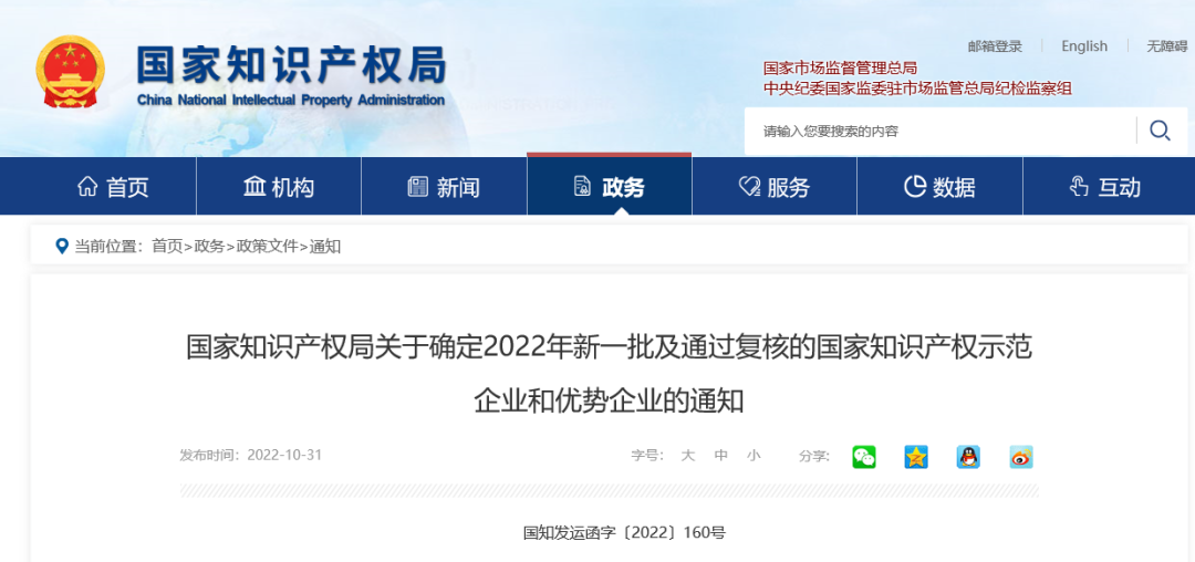 “国家知识产权示范企业”是国家对企业知识产权工作给予的最高荣誉和评价,根据中共中央、国务院印发的《知识产权强国建设纲要(2021—2035年)》决策部署,国家正着力培育一批具备知识产权战略管理理念,知识产权创造、运用、保护、管理能力全面发展,知识产权综合竞争优势突出的企业,获选者皆为具有行业影响力和标杆性的一流示范企业。