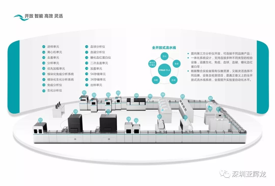 随着中国医疗卫生水平的不断提高和人民对医疗检测服务的更高要求,大型医疗机构的实验室样本量也在不断增加,先进的检验设备技术是患者的需求,也是科室发展的需要,更是医院诊疗服务特色的体现。亚辉龙一直致力于为人类医疗保健事业提供卓越的产品和服务,既有完善的检测菜单,涵盖肿瘤、激素、甲状腺功能、心肌梗、贫血、骨代谢、自身抗体、TORCH、呼吸道病毒、肺炎、生殖健康等超过140个注册试剂项目,又有智能化的流水线设备,能进一步提高医院诊疗水平,增强实验室的综合实力,全面推动医院科室在业界的地位和影响力,为人类健康事业做出自己的贡献!