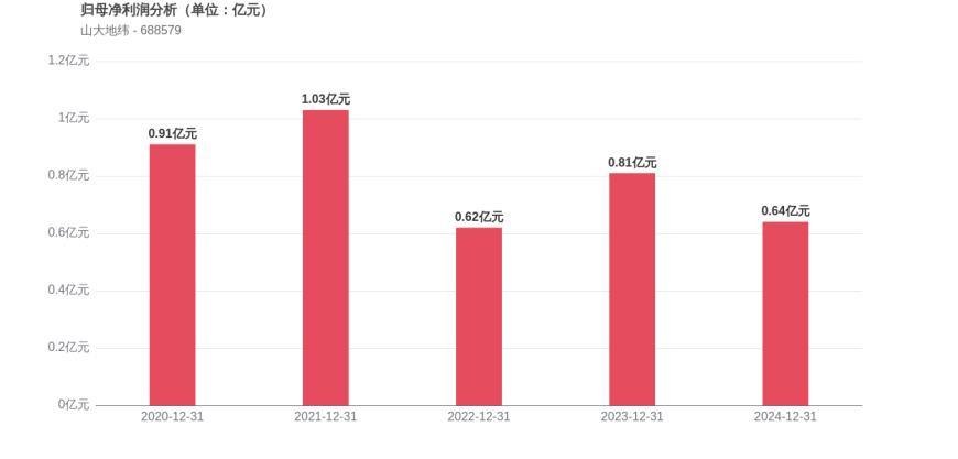 利润角度分析,2020年山大地纬实现归母净利润0.91亿元,2024年0.64亿元。净利润水平出现明显下滑,盈利能力有所减弱。