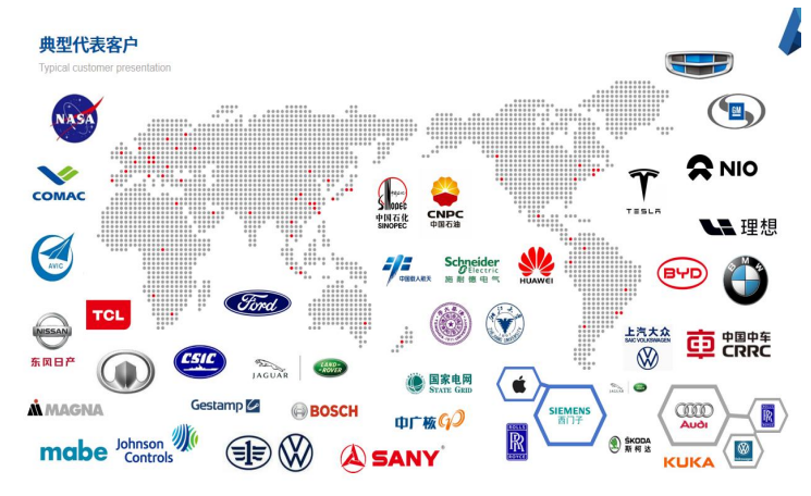 截至2025年上半年,公司积极拓展海外市场,境外收入同比增长超过60%,累计服务终端客户数千家,经销商及销售与技术支持团队遍布主要国家和地区,为航空工业集团、中国商飞、比亚迪、一汽大众、宁德时代、上汽大众、上汽通用、特斯拉、中联重科、徐工集团、中兴通讯等知名企业,以及中国科学院空间应用工程与技术中心、中国科学院微电子研究所、清华大学、浙江大学、南京航空航天大学等研究机构院所提供前沿技术方案。
