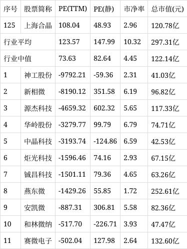 从行业市盈率排名来看,公司所处的半导体行业市盈率平均123.57倍,行业中值73.63倍,上海合晶排名第125位。