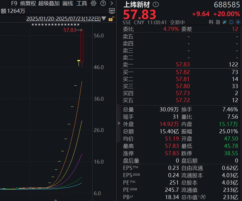 7月23日,上纬新材再度涨停,走出11连板,11天累计涨幅达643.32%。