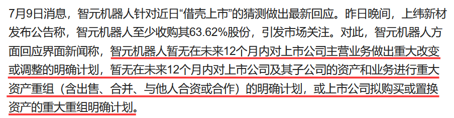 智元机器人收购上纬新材控制权,也引发了不少质疑。首先是关于借壳上市。根据相关规定,需满足两个条件:一是上市公司控制权发生变更;二是上市公司在控制权变更后向收购人及其关联方购买的资产总额、资产净额、营业收入、净利润、股份等任一指标达到上市公司原相应指标的100%以上。智元机器人本次收购不伴随资产注入,因此不构成借壳上市。但市场质疑其“分步走借壳”,且智元不满足科创板上市条件,或为提前锁定壳资源。