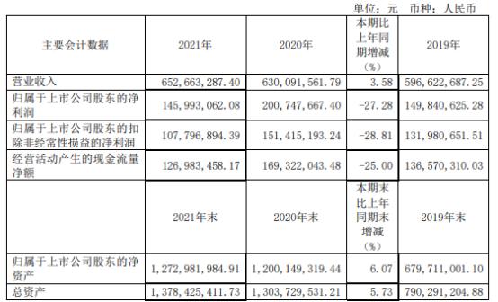 挖贝网4月7日,凌志软件(688588)近日发布2021年度报告,报告期内公司实现营业收入652,663,287.40元,同比增长3.58%;归属于上市公司股东的净利润145,993,062.08元,同比下滑27.28%。
