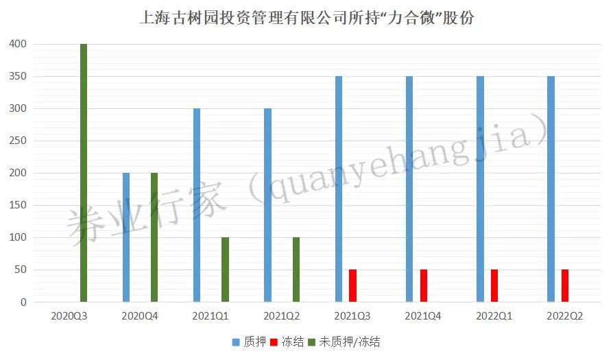 行家查看了力合微上市以来的主要股东情况,古树园投资在2020年四季度首次出现200万股的股权质押;2021年三季度起,股权质押350万股,冻结50万股。
