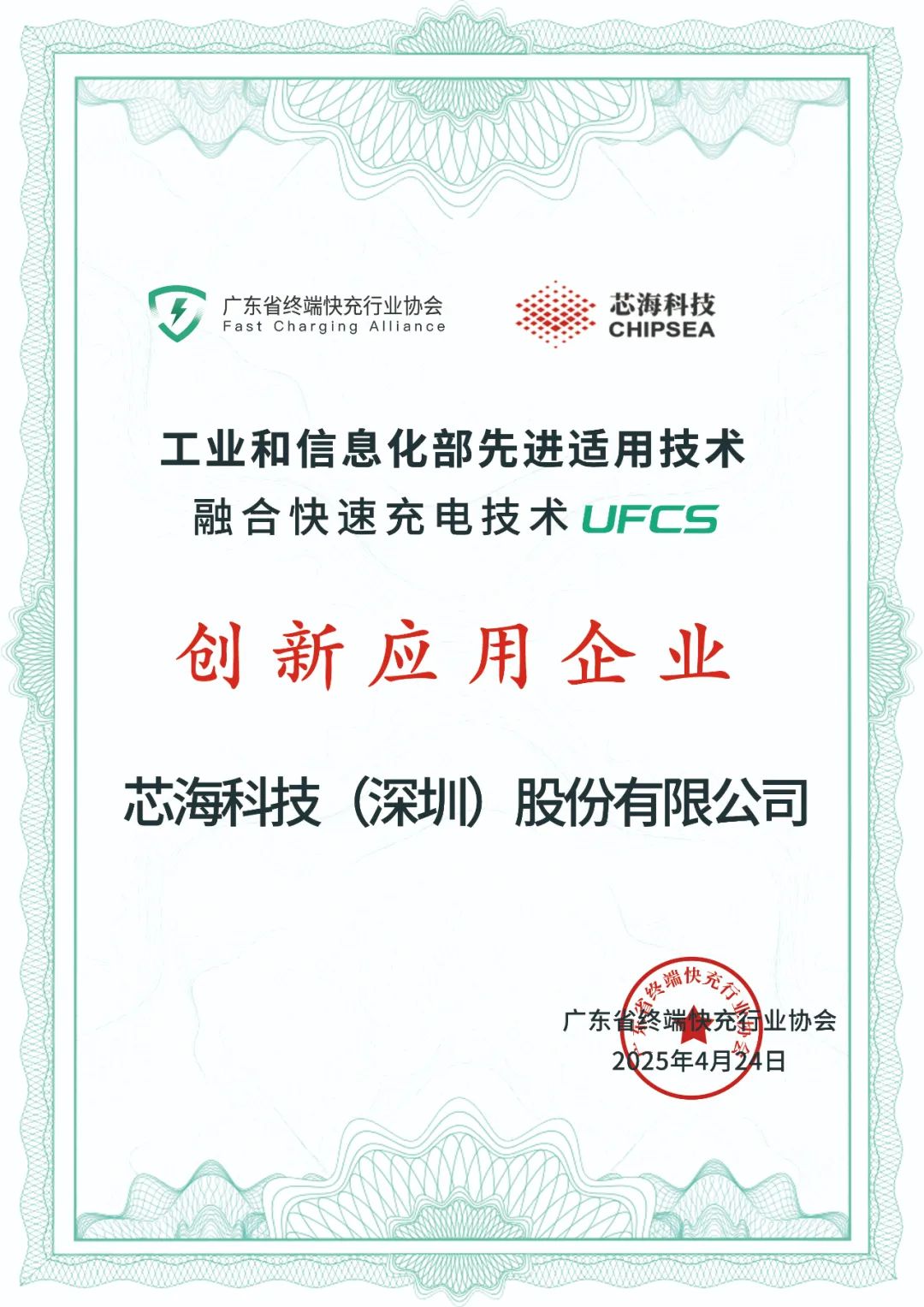 4月24日,广东省终端快充行业协会第二届会员大会暨换届选举会议在深圳举行,会上表彰了2025年度UFCS融合快充技术发展中作出突出贡献、创新应用的优秀企业。芯海科技(股票代码:688595)荣膺年度“创新应用企业”荣誉榜单。