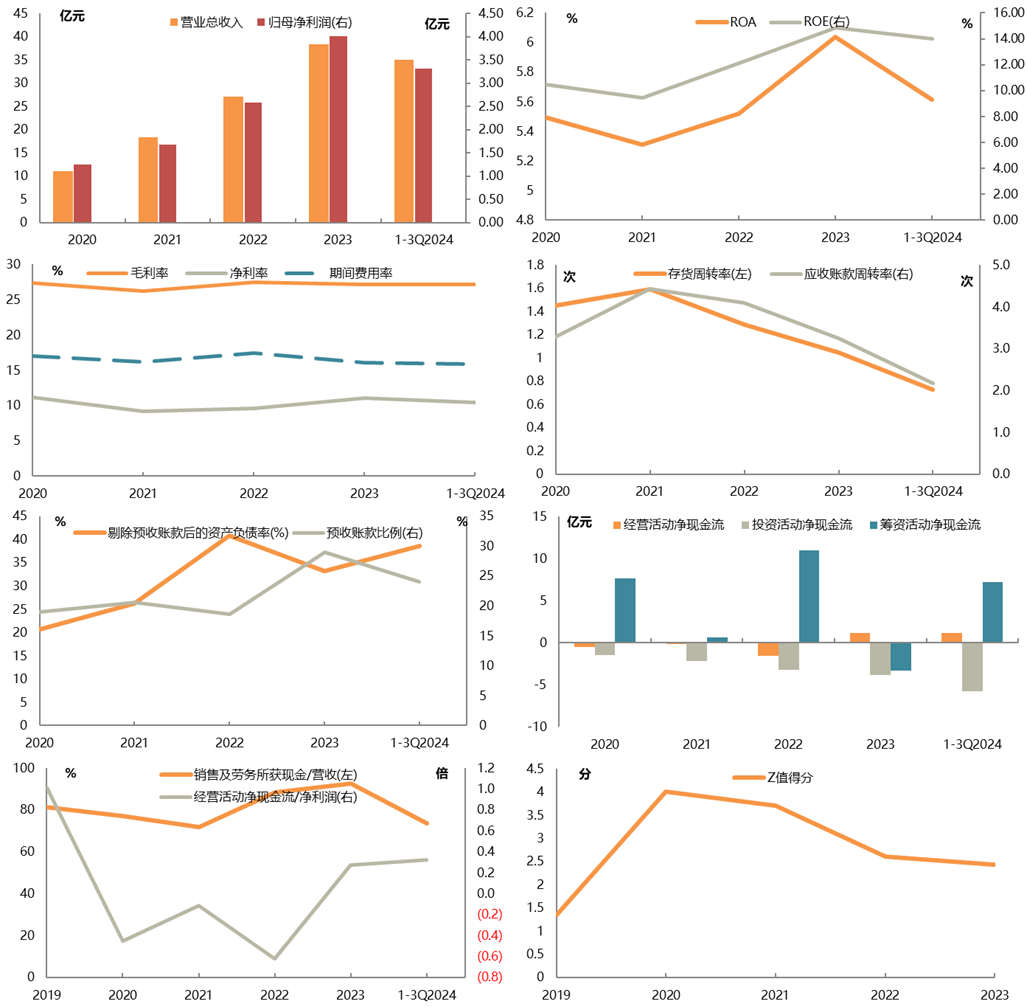 截至2025/3/14收盘公司P/E(TTM)为21.52x,位于自身历史较低水平,P/B(MRQ)为3.42x,位于自身历史较高水平。正股总市值规模113.65亿元,流通盘占比100.0%,股权质押比例为1.03%,公司实控人为崔荣,俞东雷(境外性质),截至3Q2024末,第一大股东(風帆控股有限公司)持有公司股份17.63%,正股机构关注度较高(公募持有16.74%),近180日波动率为55.49%。