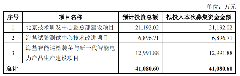 昨日晚间,煜邦电力发布了《向不特定对象发行可转换公司债券预案》。本次向不特定对象发行可转换公司债券的募集资金总额不超过41,080.60万元(含本数),扣除发行费用后的募集资金净额拟用于投入以下项目:北京技术研发中心暨总部建设项目、海盐试验测试中心技术改进项目、海盐智能巡检装备与新一代智能电力产品生产建设项目。