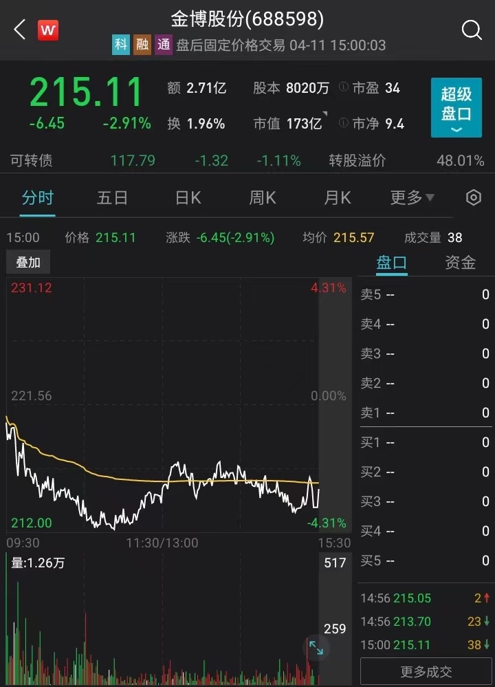 金博股份4月11日股票走势