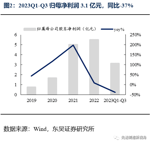 2023年前三季度公司营收8.8亿元,同比-23%,归母净利润为3.1亿元,同比-37%,扣非归母净利润为0.6亿元,同比-78%,营收利润同比下降主要系公司主业热场价格下降所致;Q3单季营收2.7亿元,同比-10%,环比-11%,归母净利润为0.3亿元,同比-78%,环比-83%,扣非归母净利润为0.01亿元,同比-98%,环比-97%。