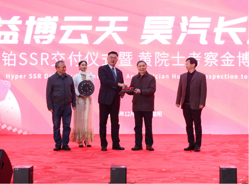 12月14日,广汽埃安旗下豪华超跑品牌昊铂SSR实车交付仪式在益阳高新区东部产业园湖南金博碳素股份有限公司隆重举行。中国工程院院士黄伯云,中南大学粉末冶金研究院院长、教授张斗,广汽埃安新能源汽车股份有限公司副总经理席忠民,湖南金博碳素股份有限公司董事长廖寄乔等众多嘉宾出席,共同见证中国超跑昊铂SSR的湖南首台交付。