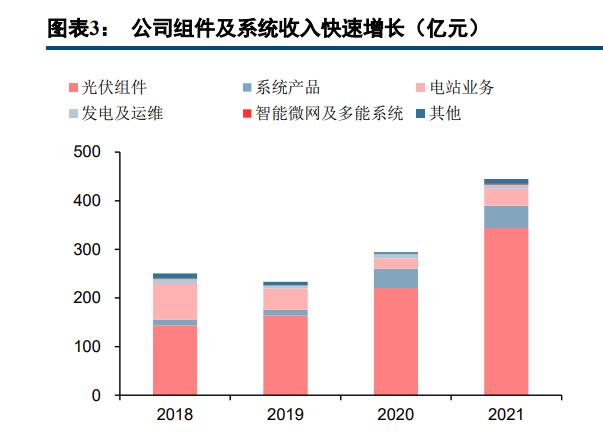 公司收入结构中光伏组件、系统产品占比较大且近三年增速较快。其中组件业务由于原材料涨价影响,20-21 年毛利率有所下降,系统产品毛利率有所上升。