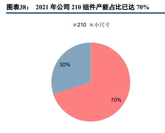公司在 210 组件端具备较强竞争力。2021 年底,公司组件产能中 210 占比已达 70%,对应产能规模 35GW,预计今年还会进一步提升。210 由于能够明显降低产业链通量成本,因此在非硅成本以及售价上,相较于小尺寸组件均具有一定优势。
