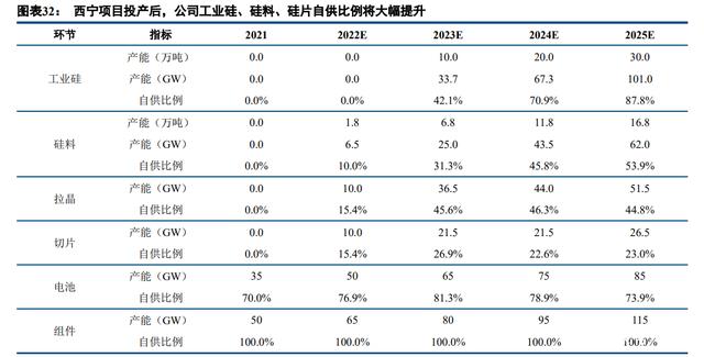 公司 2022 年 6 月发布公告,规划投资建设西宁新能源产业园项目,建设内容包括: 1)年产 30 万吨工业硅; 2)年产 15 万吨高纯多晶硅(硅料); 3)年产 35GW 单晶硅、年产 10GW 切片(硅片); 4)年产 10GW 电池、年产 10GW 组件以及 15GW 组件辅材生产线。根据公司计划,项目计划分为两期建设,一期项目预计 2022-2023 年逐步建成,二期项目预计 2023 年底-2025 年逐步建成投产。该项目资金来源为公司自有资金及自筹资金,自筹资金包括但不限于公司与战略合作伙伴以合资方式共同出资及公司向金融机构借款等方式筹得资金。