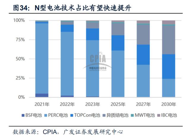②折旧:由于TOPCon增加硼扩、隧穿氧化及多晶硅层沉积设备,基于PERC产线改造升级成本约为0.5亿元/GW,考虑折旧年限为8年,对应折旧成本增加约0.006 元/W,可通过关键零部件国产化等方式进一步降低。③其他:按增加0.01元/W估算。例如,能耗方面由于TOPCon掺杂元素由磷变为硼,需要在高达900-1100摄氏度高温扩散或进行二次掺杂,导致能耗成本增加,可通过激光掺杂进行降低能耗,同时提升效率。④良率:由于目前TOPCon主流技术方案为LPCVD路线,其容易产生绕镀问题,清洗时导致良率降低,目前平均量产良率约97%,较PERC良率99%仍有差距,良率损失会导致成本增加,部分厂商通过解决绕镀问题和简化生产流程的方式,将良率提升至98%以上。