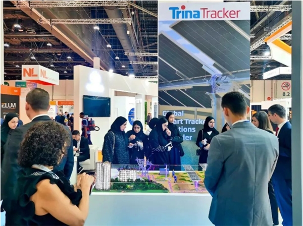 1月16日-1月18日, 2023年世界未来能源峰会(WFES)在阿联酋阿布扎比国家展览中心盛大召开,天合跟踪携沙戈荒系统解决方案精彩亮相,吸引了许多参展嘉宾围观询问。