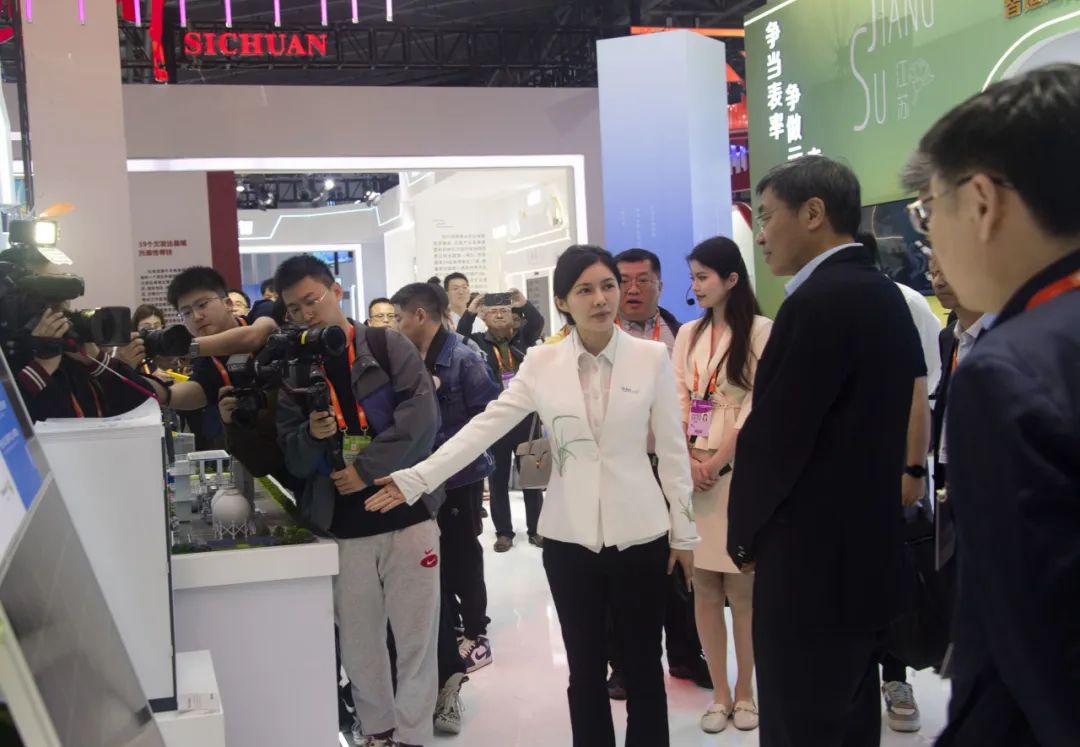当天品牌日活动启动前,江苏省委常委、常务副省长马欣调研“中国品牌日”天合光能展区。天合光能至尊N型720W系列组件和天合新一代工商业储能一体机Potentia蓝海亮相展区,高海纯详细介绍了其产品性能,并得到了马欣的肯定,“天合光能的产品还是有不少亮点的!”