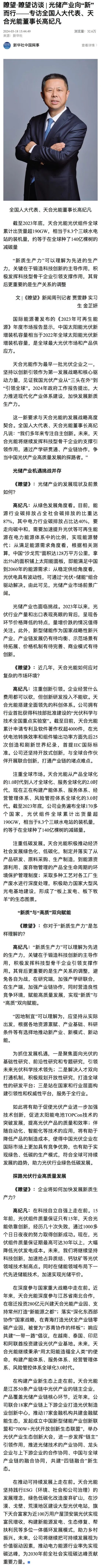 3月18日,《瞭望》刊发《瞭望·瞭望访谈|光储产业向“新”而行——专访全国人大代表、天合光能董事长高纪凡》。