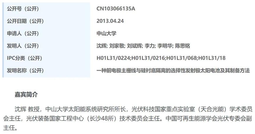 有趣的是,力场君查到,润阳股份从中山大学受让的9项专利,发明人大多与光伏行业知名的专家、中山大学太阳能系统研究所所长沈辉教授有关;而公开资料显示,沈辉教授是光伏科技国家重点实验室(天合光能)学术委员会主任。
