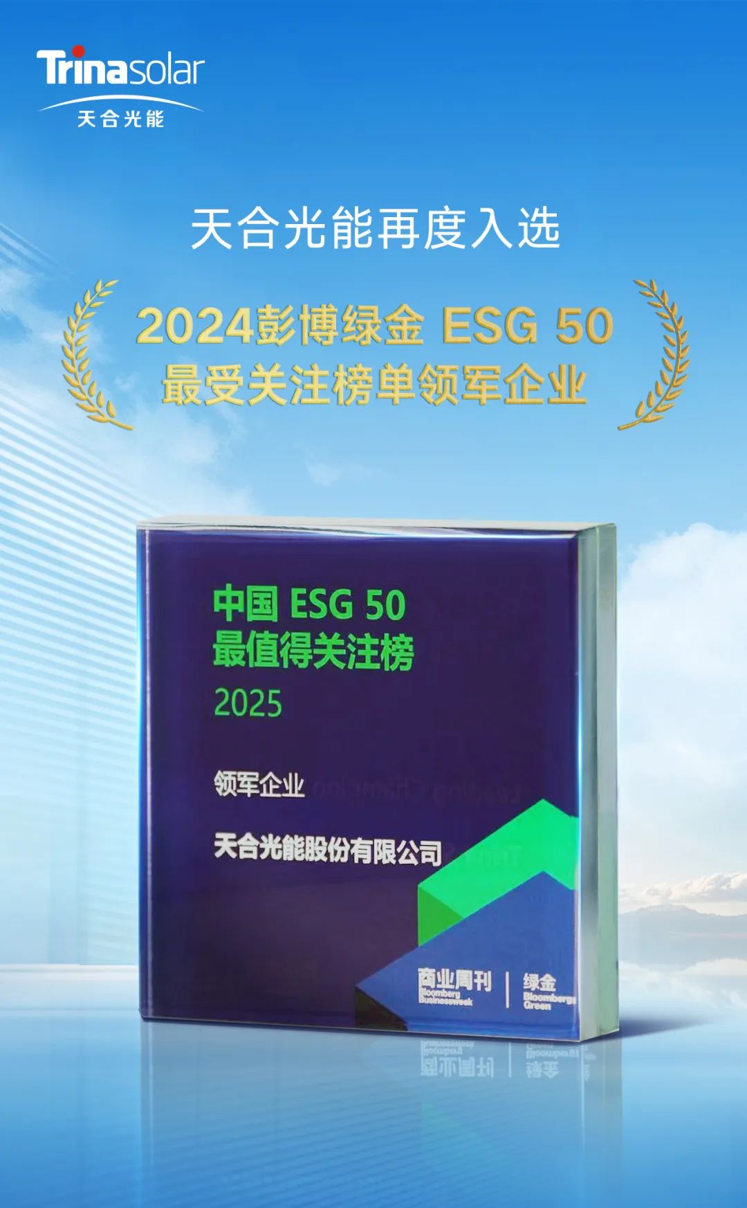 截至目前,天合光能已荣获2024绿光ESG榜典范案例TOP100、福布斯中国创新企业ESG50榜单、2024年《财富》中国ESG影响力榜单、2023年度彭博绿金ESG 50、中国欧盟商会“脱碳领航者”大奖等多项荣誉,还成为唯一入选中国年度 ESG卓越实践30强的光伏企业。2024年,天合光能MSCI(明晟)评级从“BB”上调至“BBB”等级,天合光能盐城大丰基地成功通过TüV莱茵“零废”工厂和“零碳”工厂认证审核,荣获“零废”工厂认证证书和2023年度“零碳”工厂(Ⅰ型)三星认证证书,成为光伏行业首个获得该机构颁发“零废”工厂证书的企业。