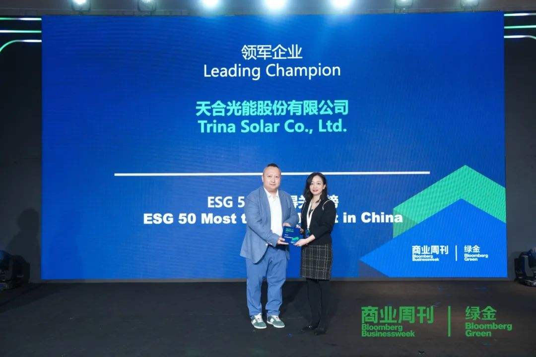 11月28-29日,2024彭博绿金影响力论坛暨ESG 50榜单发布会携手彭博《商业周刊》主办的展望2025峰会共同在上海举办。来自全球的多家知名企业ESG业务领袖和高层管理人员齐聚一堂,对各企业在ESG领域内创新举措展开分享和交流。天合光能凭借其在ESG领域的卓越表现,再度成功入选“2024彭博绿金ESG 50最受关注榜单”,并获评“领军企业”。天合光能助理副总裁、集团风险控制管理部兼ESG管理负责人吴肖受邀参加并就“全球环境下的ESG风险管理”发表主题演讲,获得现场嘉宾积极反响与肯定。