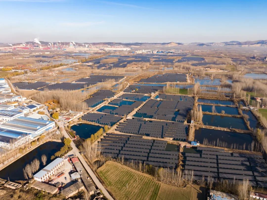 肥城石横镇这一渔光互补项目所在地为石横镇的采煤塌陷区,是山东省新旧动能转换优选项目及泰安市绿卡重点项目。天合光能充分挖掘统筹采煤塌陷地等可利用的资源,创新性地推出“水面光伏发电+水下渔业养殖”的渔光互补模式,项目不仅为当地提供了坚实的绿色电力支撑,也促进了生态环境的治理和改善,发展清洁能源带动采煤沉陷区绿色转型,充分发挥了经济效益和生态效益。