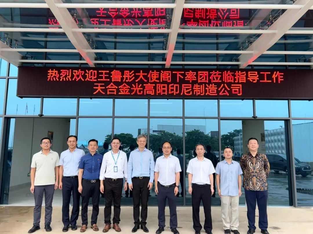 近日,中国驻印度尼西亚共和国特命全权大使王鲁彤率使馆团队调研天合金光高阳印尼制造公司(以下简称“天合光能印尼基地”),深入了解企业运营情况。使馆经商处公使衔参赞李洪伟、参赞吴志伟陪同调研。天合印尼基地负责人徐明、组件车间厂长项国荣、电池车间厂长张亮等参加。