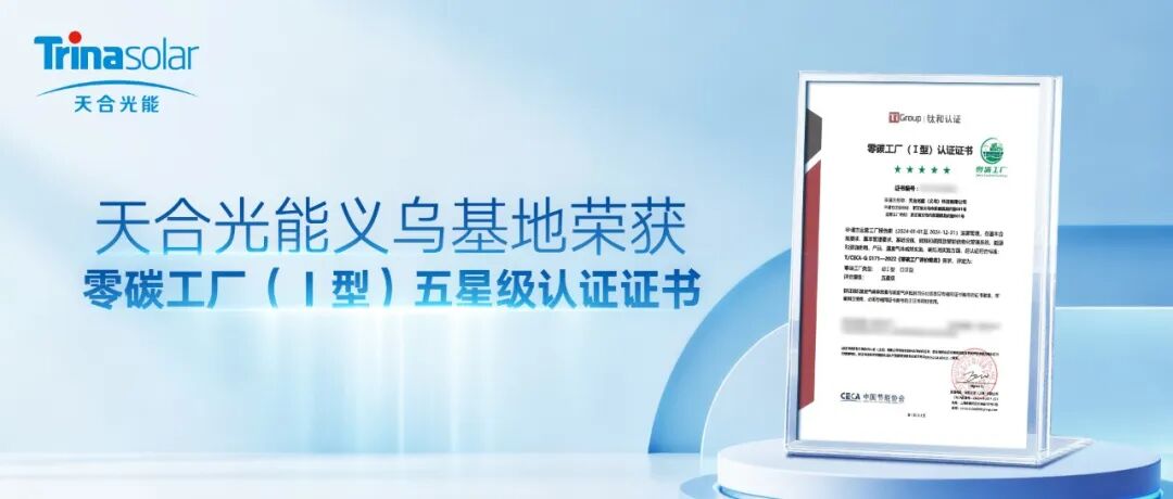 近日,天合光能(义乌)科技有限公司顺利通过钛和认证“零碳”工厂审核,成功获得零碳工厂(Ⅰ型)五星级认证证书。这是天合光能连续三年获得此项权威绿色认证殊荣,从2023年年初成为光伏行业首家经权威机构认证的“零碳”工厂,到晋升获得零碳工厂(Ⅰ型)四星级认证,再到此次跃升至零碳工厂(Ⅰ型)等级-五星级认证,天合光能持续改善工厂温室气体管理,“零碳”工厂认证等级不断提升,以实际行动践行可持续发展承诺。